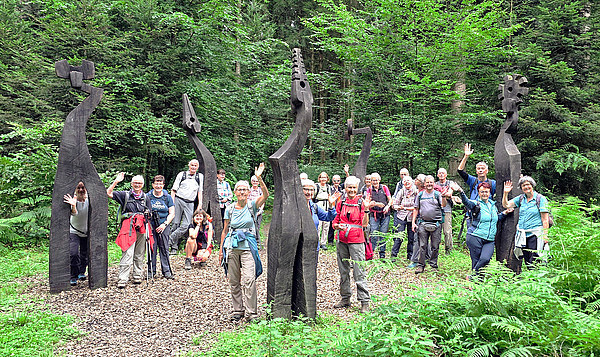 Dass es sich auch im Kanton Aargau schön wandern lässt, durfte die Wandergruppe der Berner Wanderwege im Freiamt erleben. Kurz nach dem Start in Besenbüren, gab es einen ersten Halt bei der Nachbildung der Grotte von Lourdes. Es folgten ausgedehnte Wälder, zauberhafte Figuren warteten am Sagenweg und der Waldteich Cholmoos mit den rosa Seerosen lud zum Staunen und Picknicken ein. Frisch gestärkt traf die Wandergruppe wenig später auf den Bättlerstei und den Erdmannlistei. Mythen und Geschichten ranken sich um die riesigen Findlinge im Freiämter Buchen- und Tannenwald. Trotz ungünstiger Wetterprognose erreichte die Gruppe das historische Städtchen Bremgarten an der Reuss trockenen Fusses.