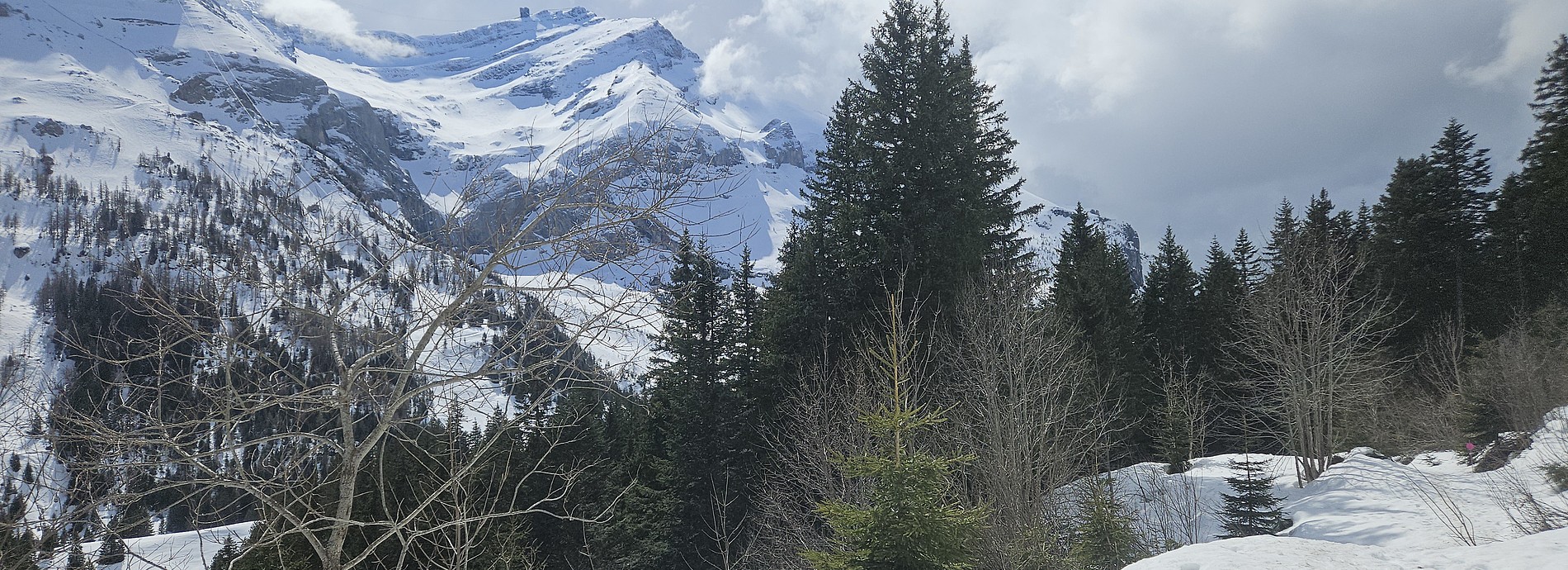 Der Schneeschuhtrail vom Col du Pillon zum Lac Retaud führt über das Chalet du Rard, durch verschneite Wälder und Weiden. Unterwegs geniessen wir die Winterstille und eindrucksvolle Ausblicke auf das Diablerets-Massiv sowie die Gipfel Becca d’Audon, Scex Rouge, Nägelihorn und den Diablerets-Gletscher. Der malerische See Retaud liegt idyllisch am Südhang von La Palette. Der Rückweg zum Col du Pillon erfolgt über einen Winterwanderweg durch stille Wälder und offene Weiden.