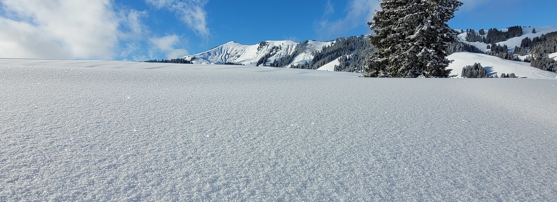 Hoch über Zweisimmen gelegen, verwandelt sich das Hochplateau von Sparenmoos im Winter in eine märchenhafte Schneelandschaft, die zum Entschleunigen und Aktivsein einlädt. Hier finden wir auch ideales Gelände für diese aussichtsreiche Schneeschuhwanderung. Die Tour führt durch winterliche Moorlandschaften, mit Ausblicken auf die Berner Alpen und das Simmental.
